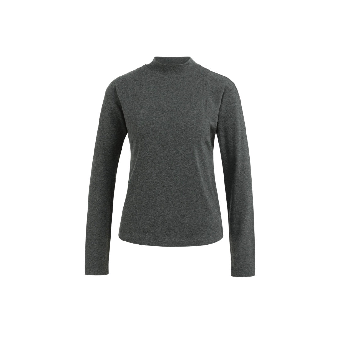 YAYA Anthracite Melange Long Sleeve Mock Neck Top