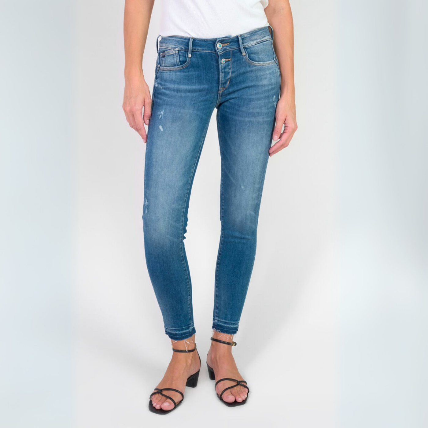 Le Temps Des Cerises Blue Dionne Skinny Jean with Button Detail